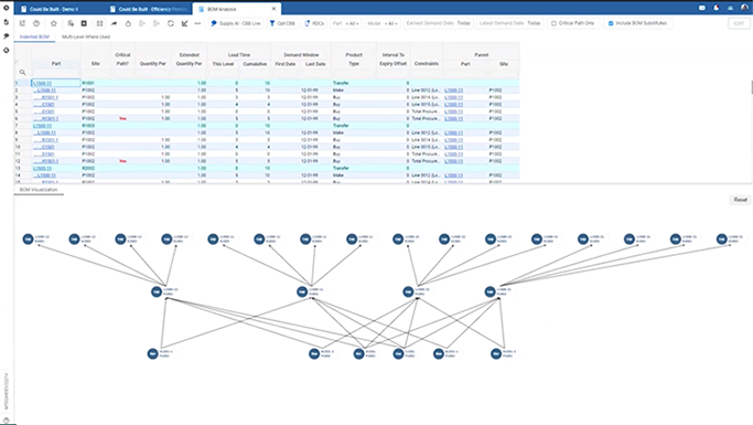 Configure business objectives to instantly determine the optimal supply source—balancing cost, capacity, and existing commitments. Streamline make-versus-buy decisions and weigh tradeoffs across internal and supplier capacities, minimum contract requirements, sustainability goals, and cost factors, including transportation, international duties, and procurement expenses.